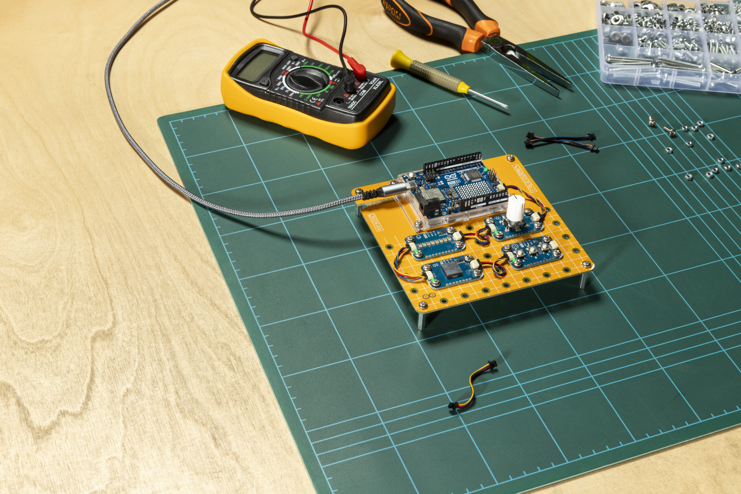 – 7x Modulino® sensores y actuadores como temperatura, movimiento y distancia, entre otros